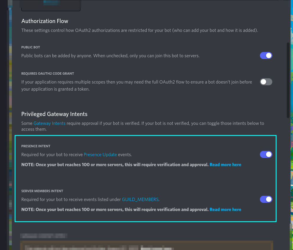 While Creating Bot make sure User Enable Some Setting, unless Bot Crash